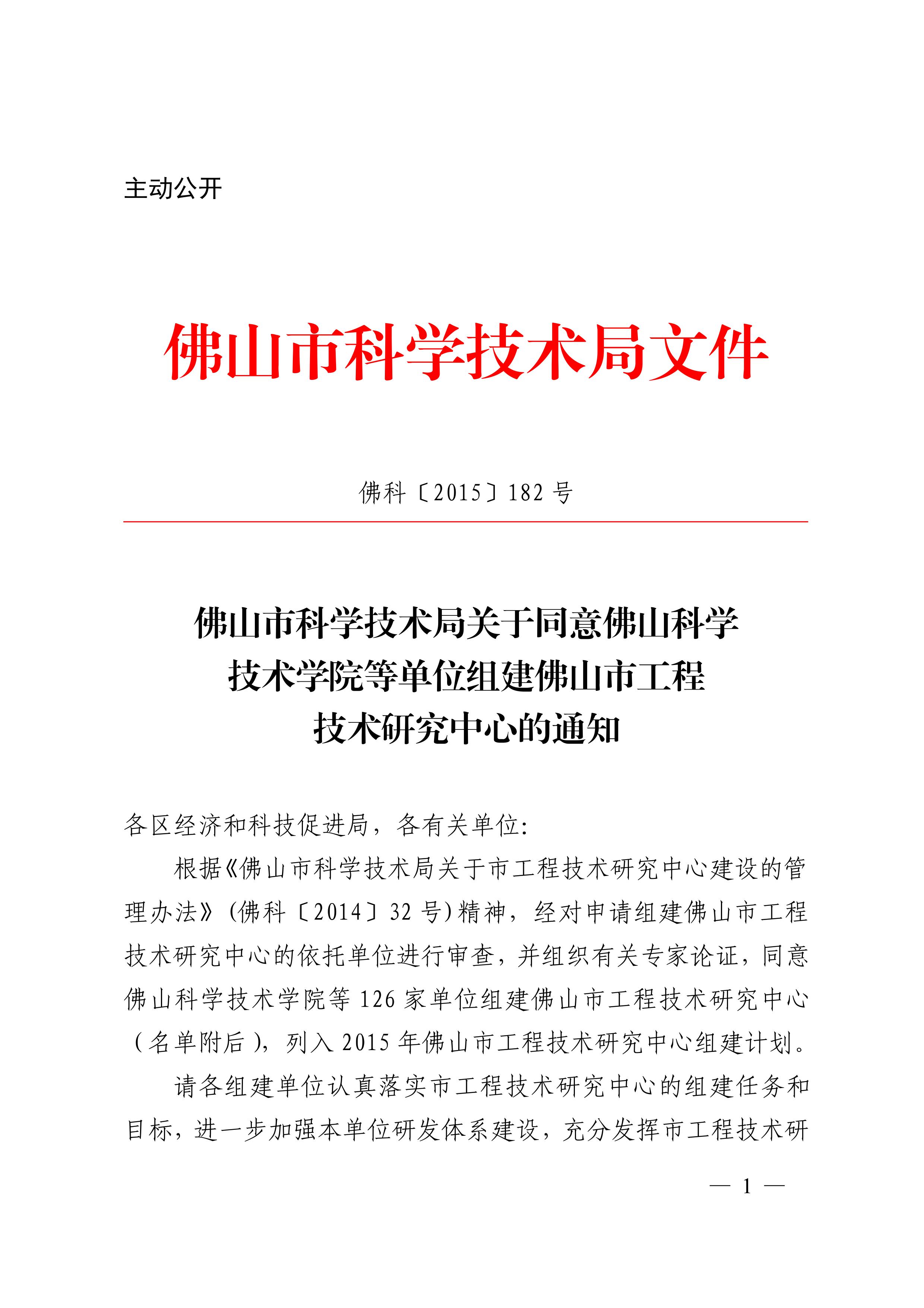 Notice of Authorization of Setting Up Foshan Engineering Technology Research Center