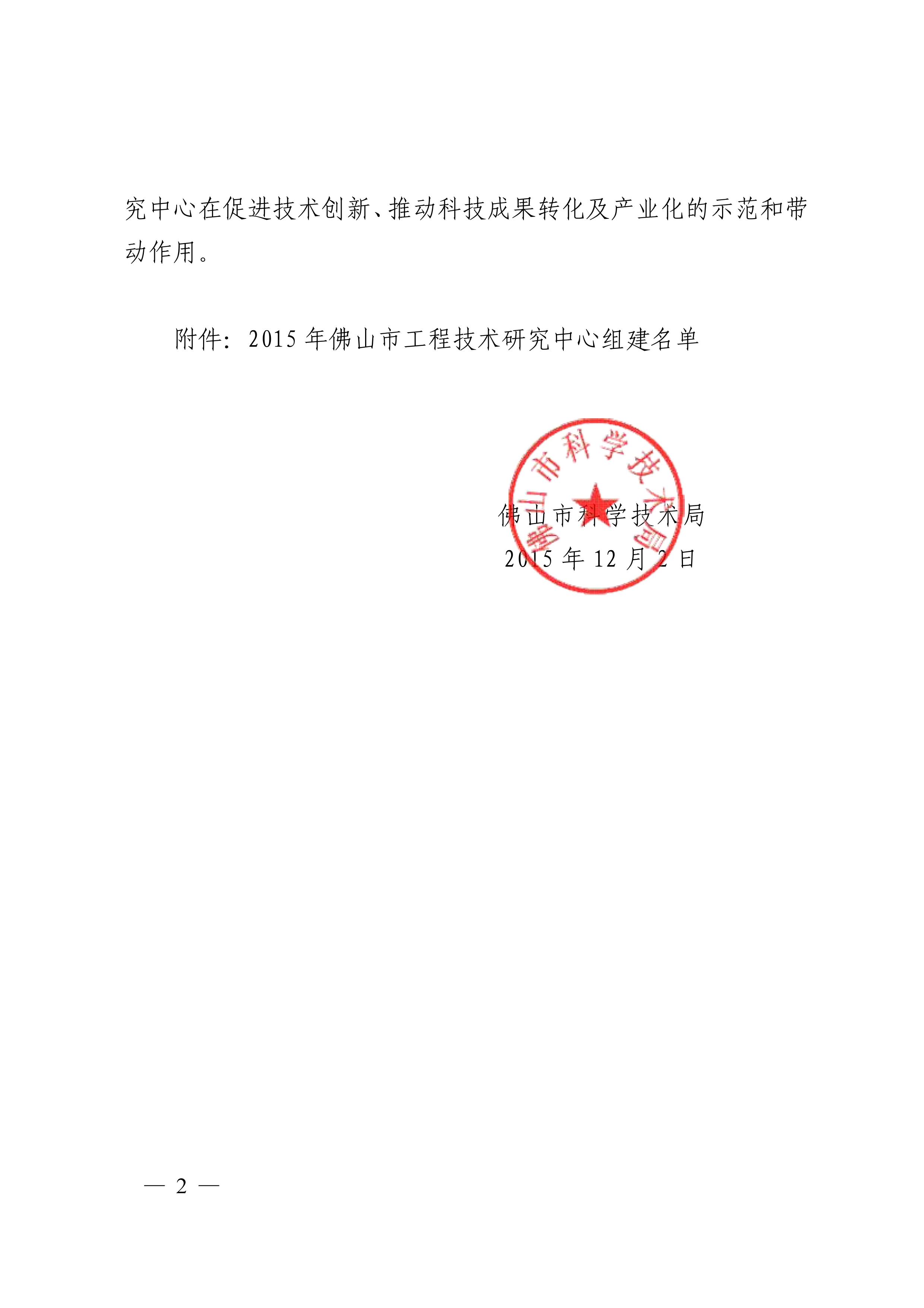 2015 Foshan Engineering Technology Research Center after review and demonstrate by experts.