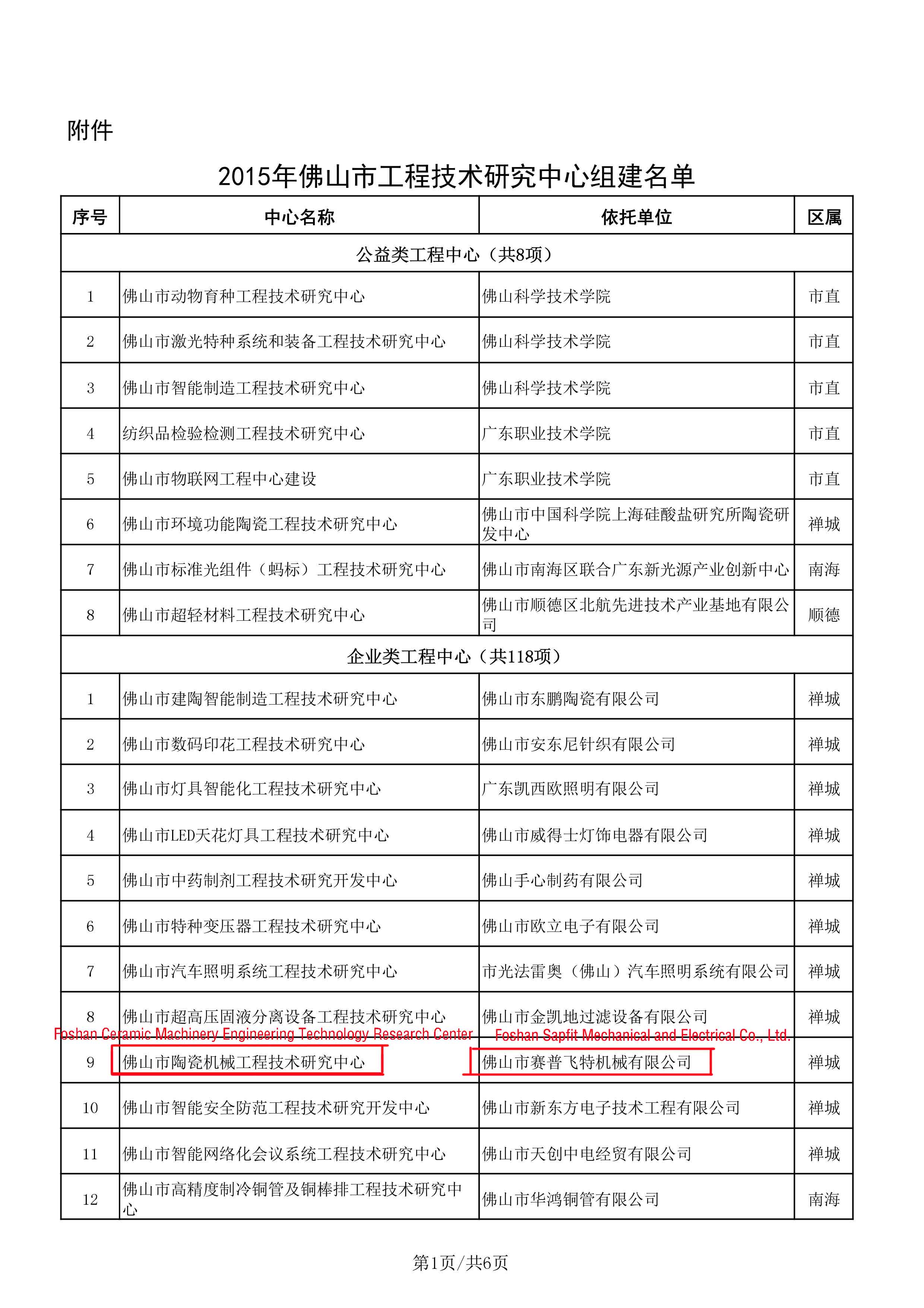 On 2nd DEC 2015, Foshan Sapfit Mechanical & Electrical Co., Ltd. was authorized as “Foshan Ceramic Machinery
