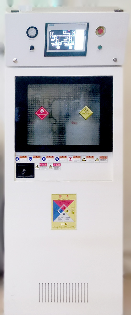 Silicon carbon negative electrode fluidized bed is a production device that uses CVD vapor deposition and coating of silicon carbon negative electrode materials. Using carrier gas to fluidize porous carbon powder in a reaction vessel through a gas distributor, and then mixing the silicon containing gas raw materials through a flow rate ratio before entering the reaction vessel; At high temperatures of 500-750℃, silicon containing gas raw materials are cracked into silicon and hydrogen, and silicon atoms deposit in porous carbon pores to form nano silicon. After sedimentation is completed, acetylene is introduced again for high-temperature cracking to complete carbon coating treatment.